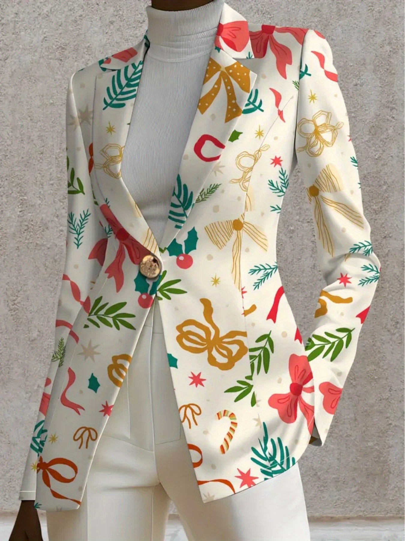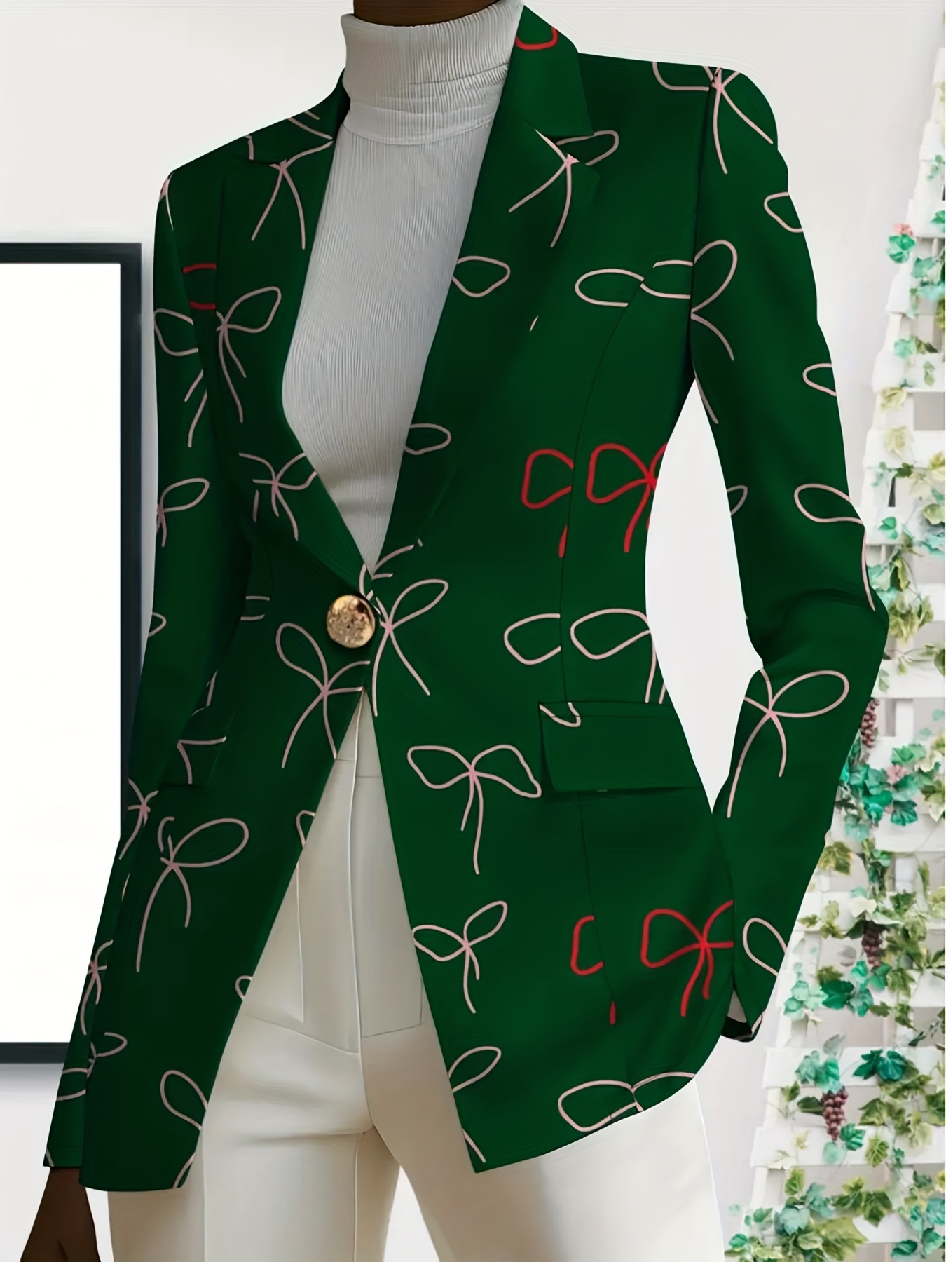 Plus Size - Women'S Plus Size Elegant Minimalist Solid Green Suit Jacket - Structured Lapel Collar, Single-Button Closure, Tailored Fit for Fall/Winter, Versatile for Casual & Formal Occasions, Durable & Comfortable Professional & Everyday Outerwear