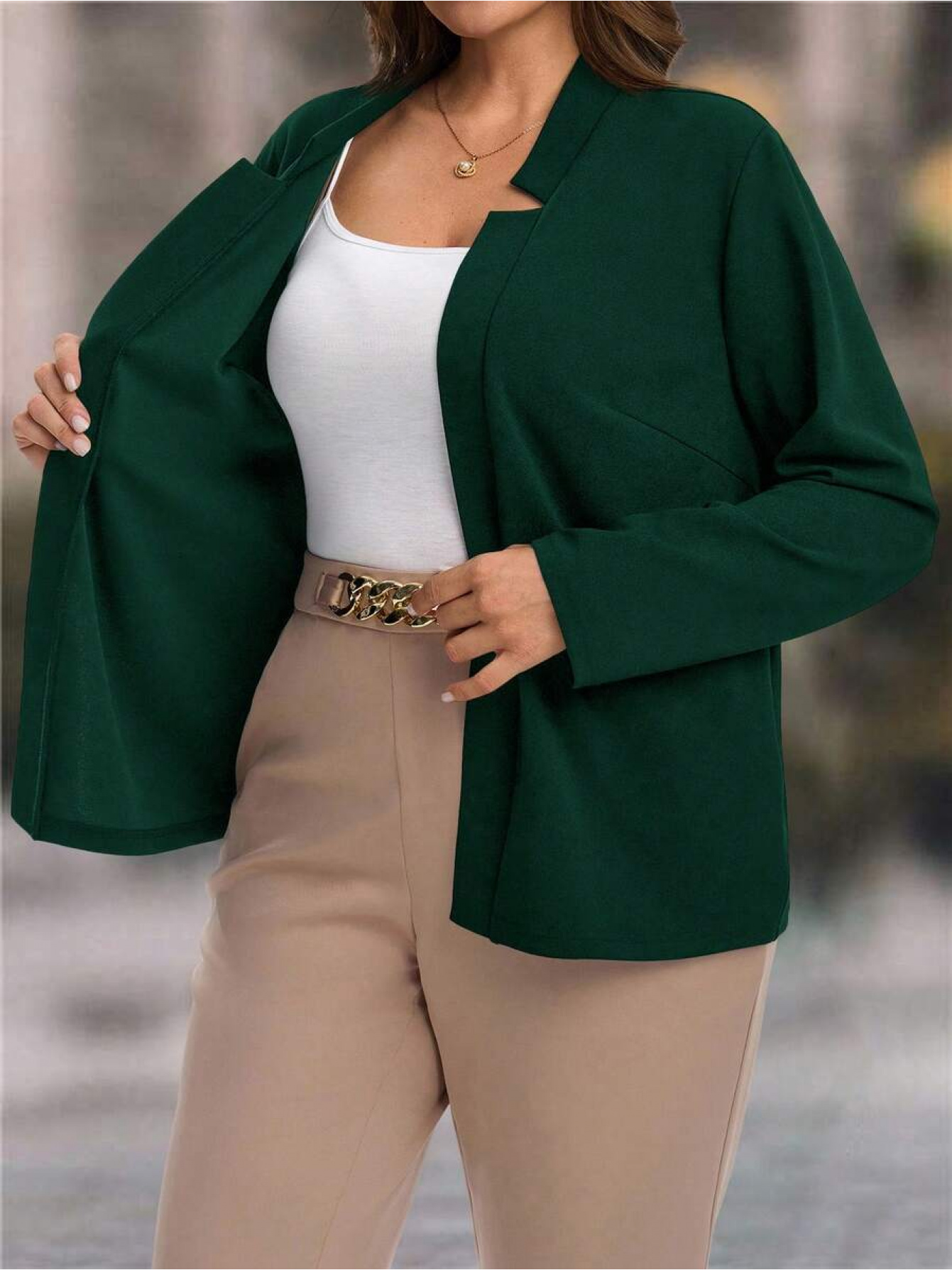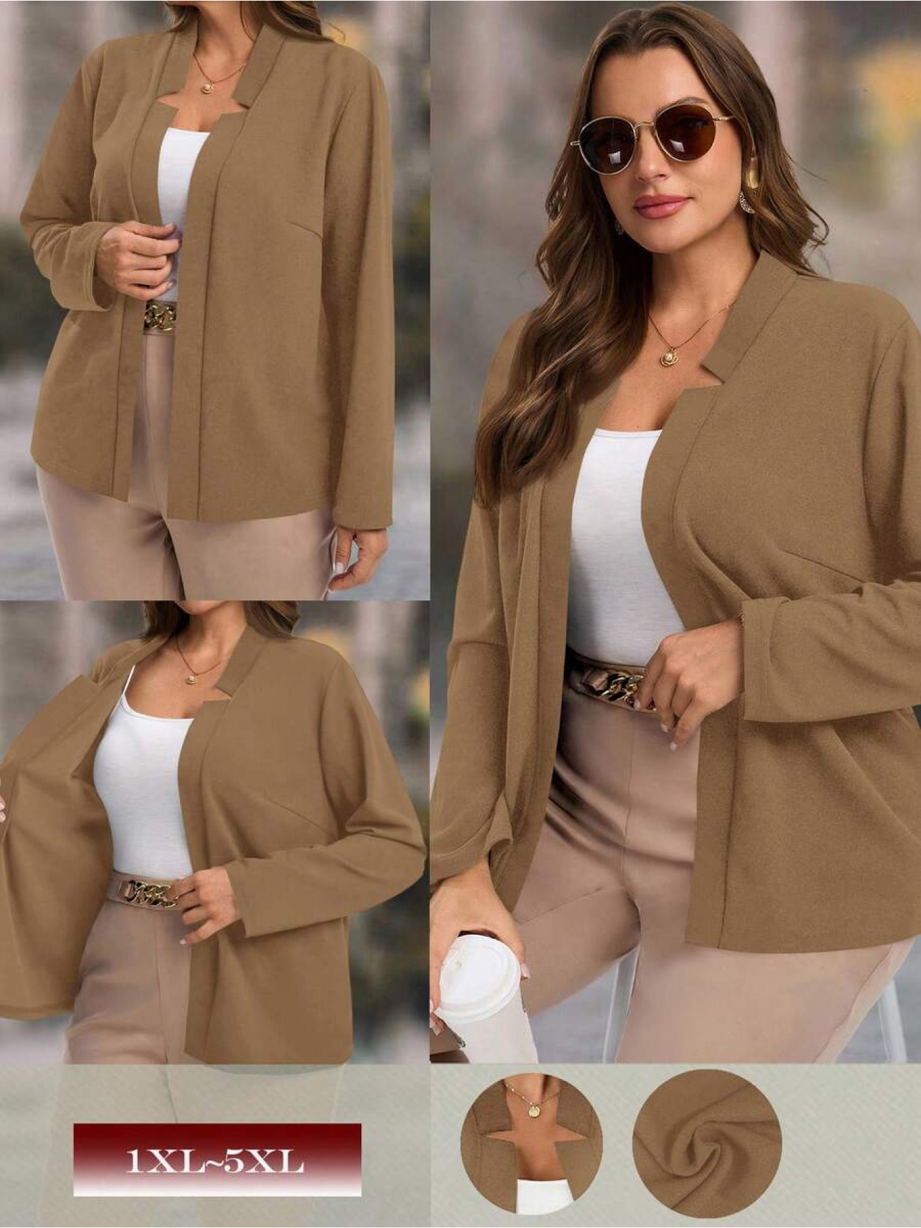 Plus Size, Women's Plus Size Elegant Suit Jacket - Solid Color Professional Blazer, All-Season Casual & Office Wear, Regular Fit for Weddings, Business Meetings, Everyday (Hand Wash/Dry Clean Care) - Versatile Year-Round Outerwear