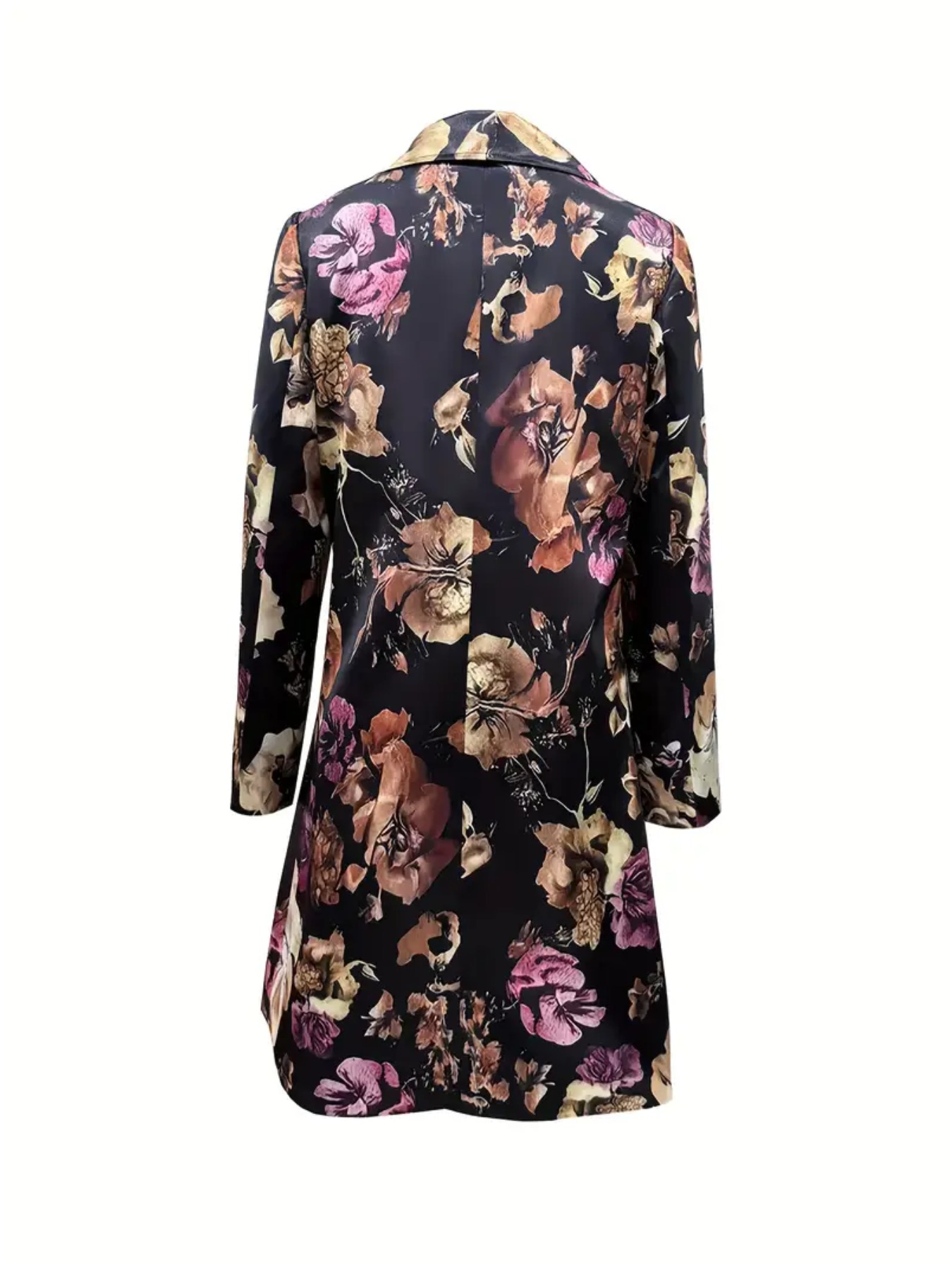 Plus Size, Women's & Burgundy Floral Blazer Jacket - Mid-Length Lapel Coat with Notch Collar, -Tone Pocket, Machine-Washable Winter Outerwear for, Weddings & Parties - Elegant Brown/Beige Trench Coat