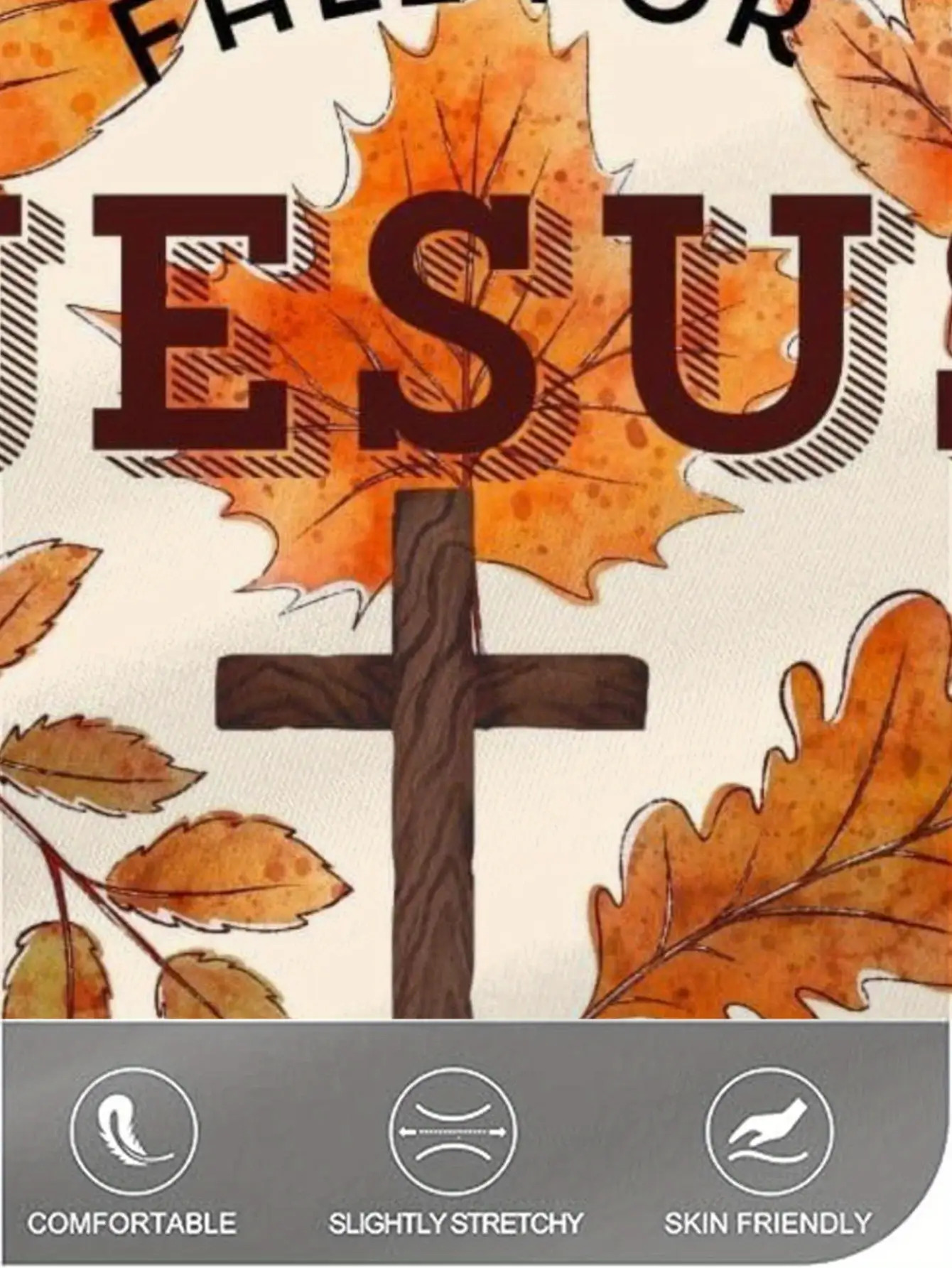 Women's Plus Size Christian Faith Dress with "Jesus Never Abandons" & "A Fall for Jesus" Bible Verse Design - Beige & Brown Autumn Leaf Print V-Neck Short Sleeve, A-Line Mid-Length Worship Dress, Machine Washable All-Season Casual Church Outfit, Religious Attire, Easy Care Fabric, Comfortable Material, Faithbased Fashion