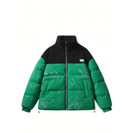 Plus Size Casual Color Block Softshell Jacket, Polyester Fabric, Non-Stretch, Long Sleeve, Regular Fit, with Stand Collar, for Fall/Winter - Woven Polyester Lined Coat 063YD