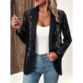 Elegant Plus Size Floral Lace Long Sleeve Open Front Blazer for Women - Stylish and Chic Clothing