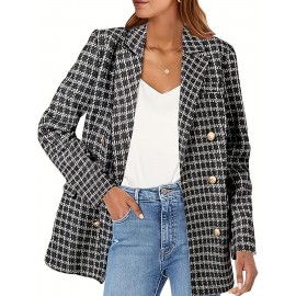 Elegant Plus Size Houndstooth Blazer for Women - 100% Polyester, Lapel Collar, Woven, Non-Stretch Fabric, All-Season, Regular Fit Adult Jacket