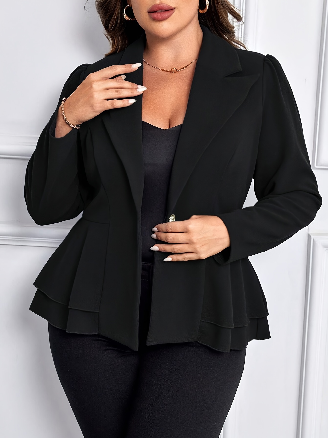 Plus Size Solid Color Single Breasted Lapel Elegant Long Sleeve Flare Hem Blazer For Work & Office