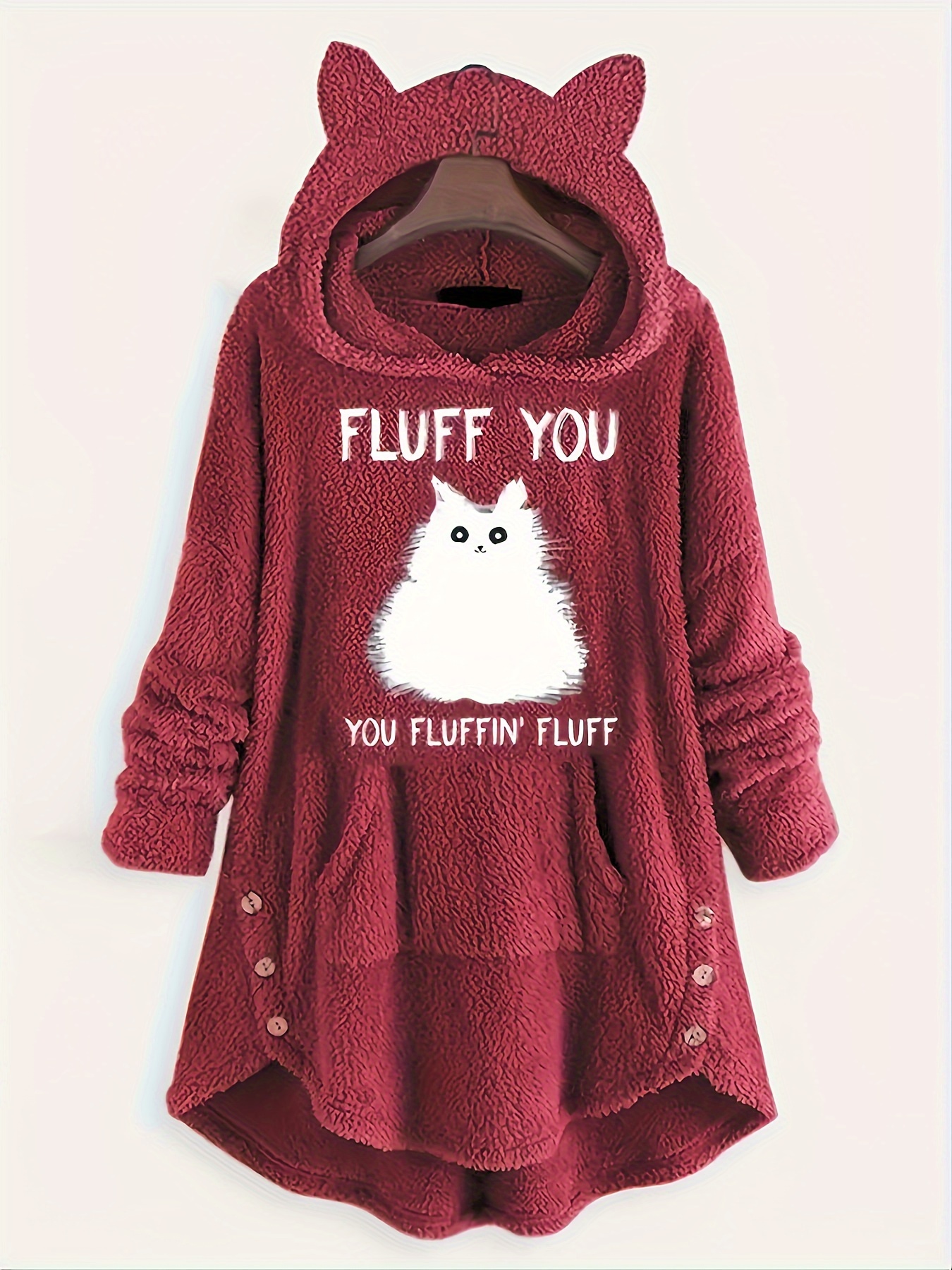 Plus Size, Plus Size Women's Autumn Winter -Lined Thickened Hooded Hand- Sweatshirt