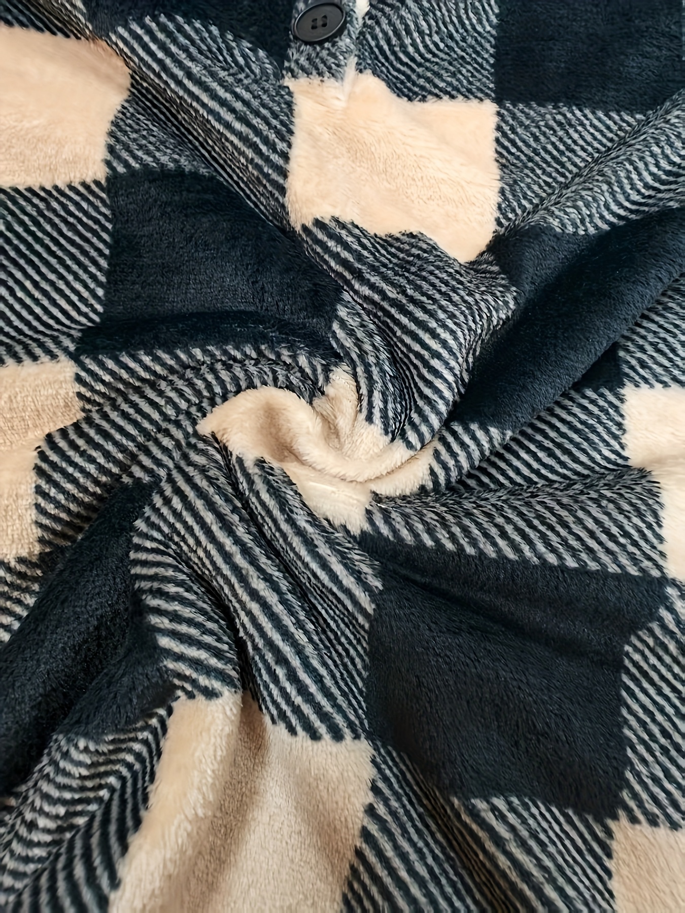 Plus Size Women's Gingham Check Hoodie - V-Neck Long Sleeve Pullover with Button Details, Drop Shoulder Design, and Pockets, Casual Wear for Fall/Winter | Vneck Hoodie | Construction, Sweater Hoodie