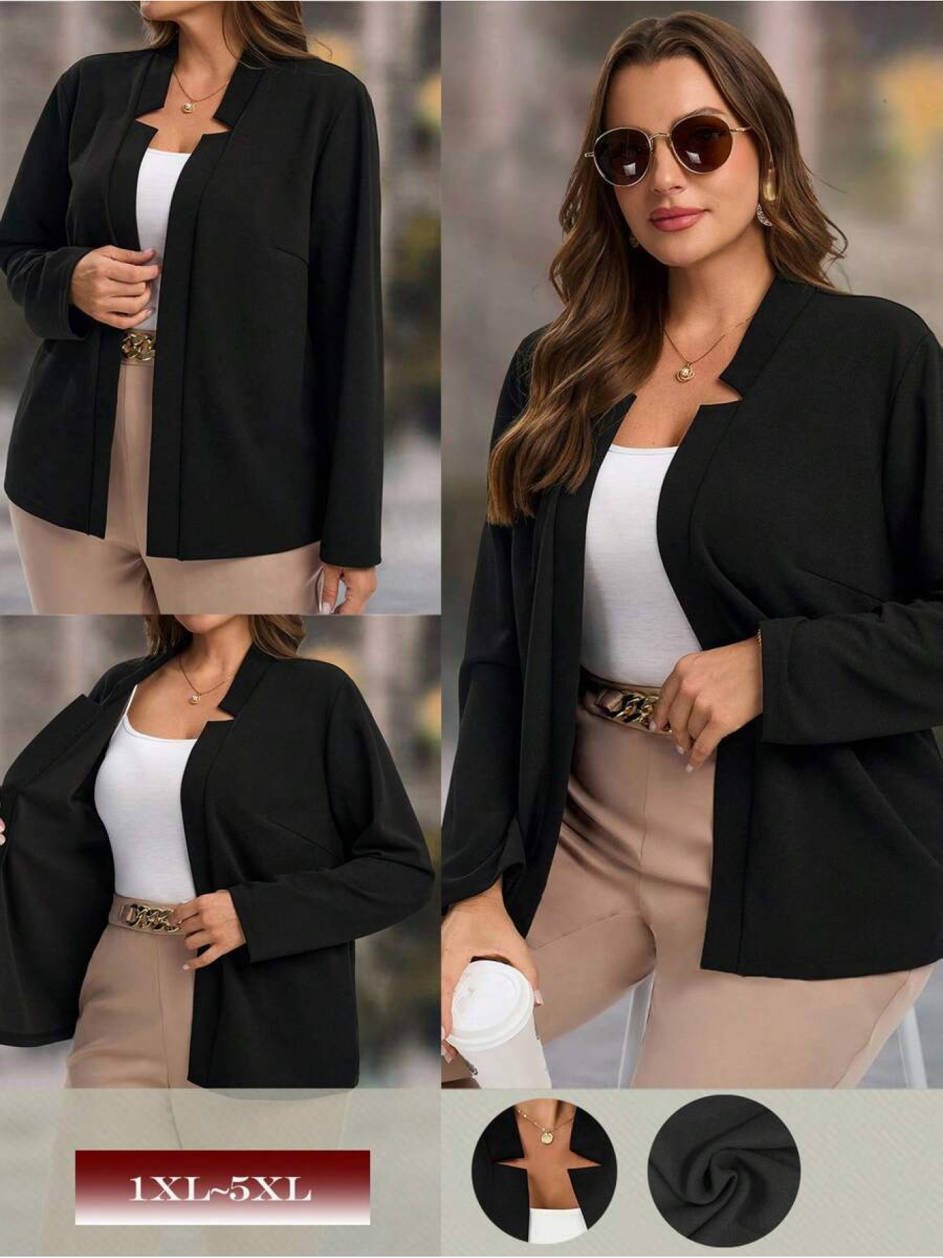 Plus Size, Women's Plus Size Elegant Suit Jacket - Solid Color Professional Blazer, All-Season Casual & Office Wear, Regular Fit for Weddings, Business Meetings, Everyday (Hand Wash/Dry Clean Care) - Versatile Year-Round Outerwear
