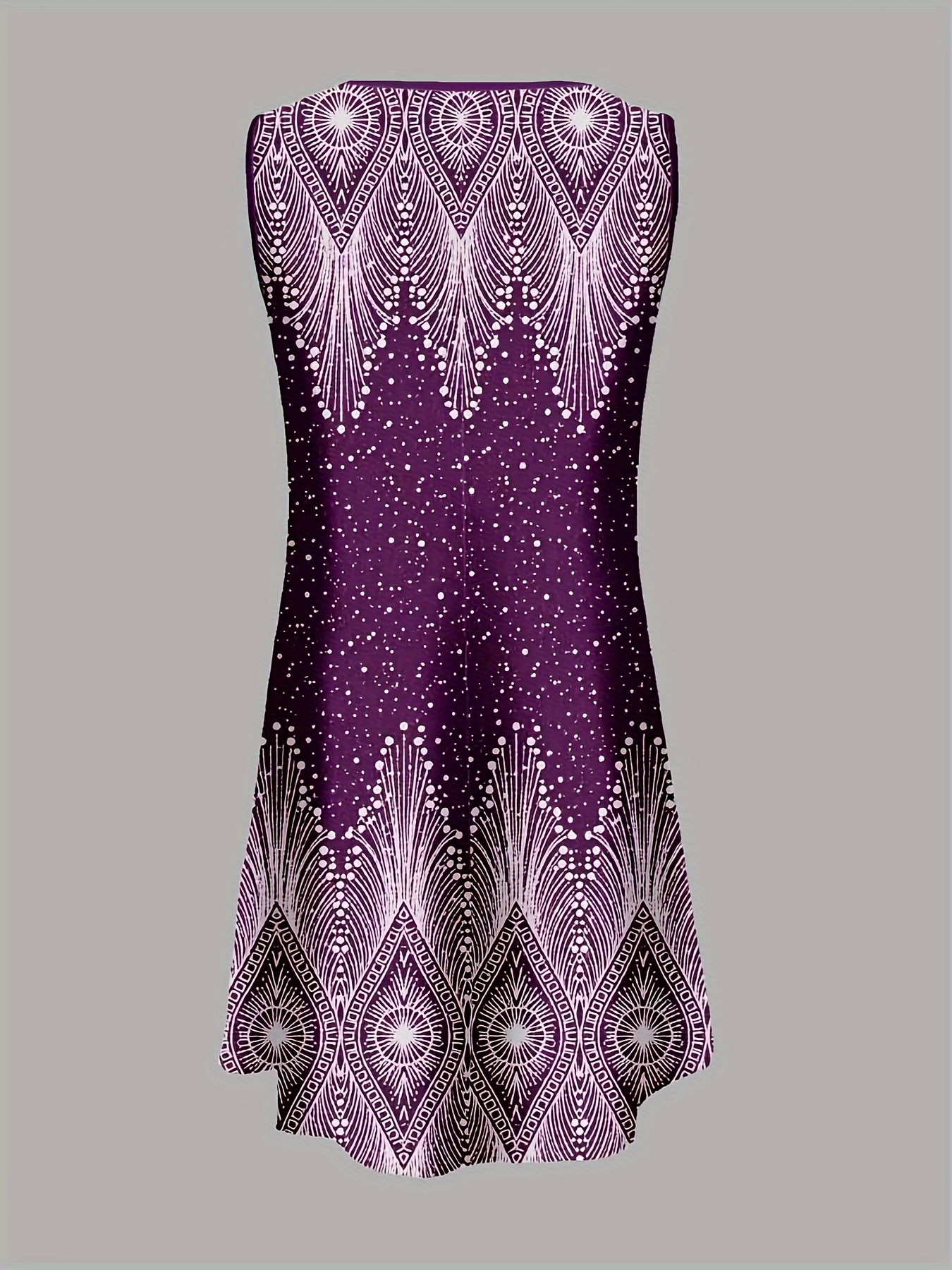 Women'S Casual Sleeveless A-Line Dress with Purple& White All-Over Print, Round Neck, Machine Washable, Medium Stretch for Spring/Summer, Spring Fashion, Elegant Style, Stretchable Fabric