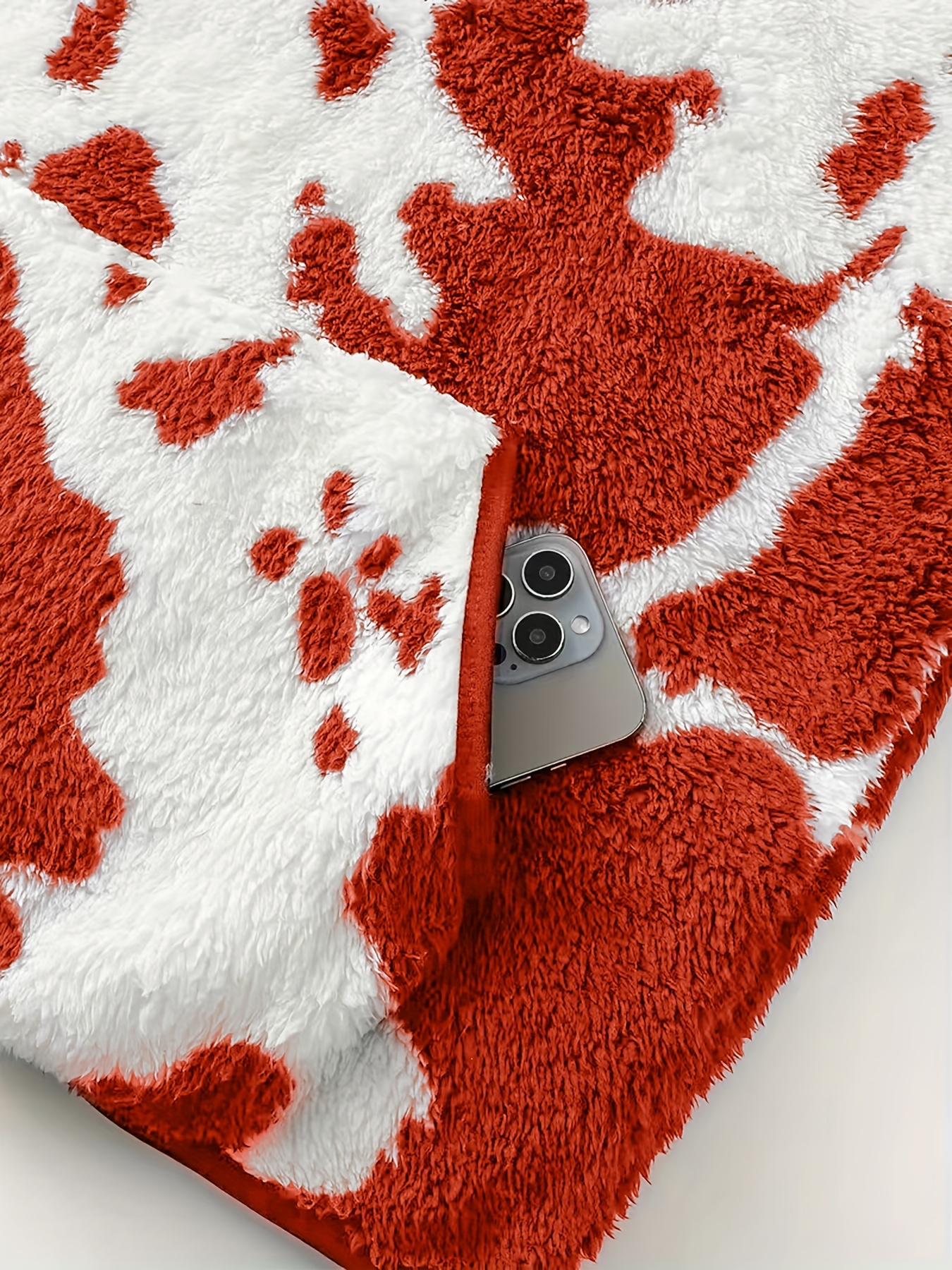 Women's Elegant Half-Zip Hooded Jacket, Plus Size Winter Warmth Coat with Full-Zip Front, Soft Fleece Lining, Animal Print (Cow/Sheep Design), Casual Outerwear, Cold Weather Wear, Stylish Outerwear, Zip-Up Coat