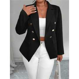 Plus Size - Plus-size Women'S Solid Color Double-Breasted Fitted Waist Long-Sleeved Suit Jacket | Elegant Style with Lapel Collar and Button Details, Perfect for All Seasons