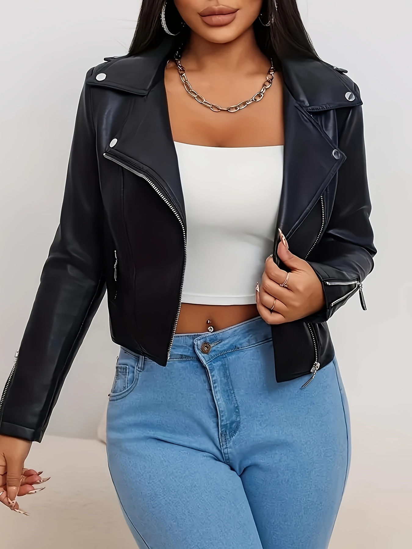 [Plus Size Bomber Jacket] Black Plus Size Women's Casual Jacket | Long Sleeve, Non-Stretch Fabric, Texture, Spring/Fall Outerwear, Zipper Bomber with Flap Pockets