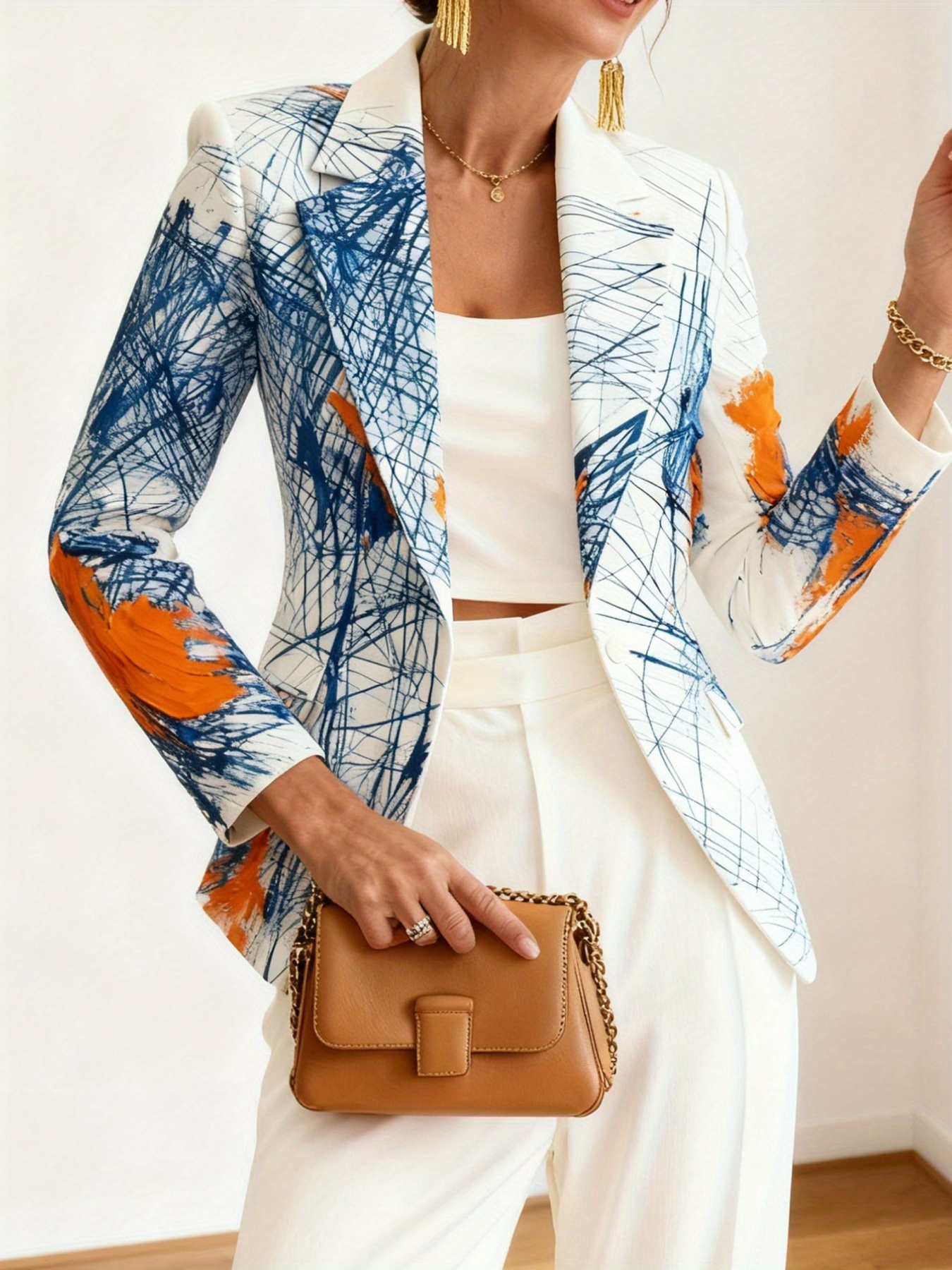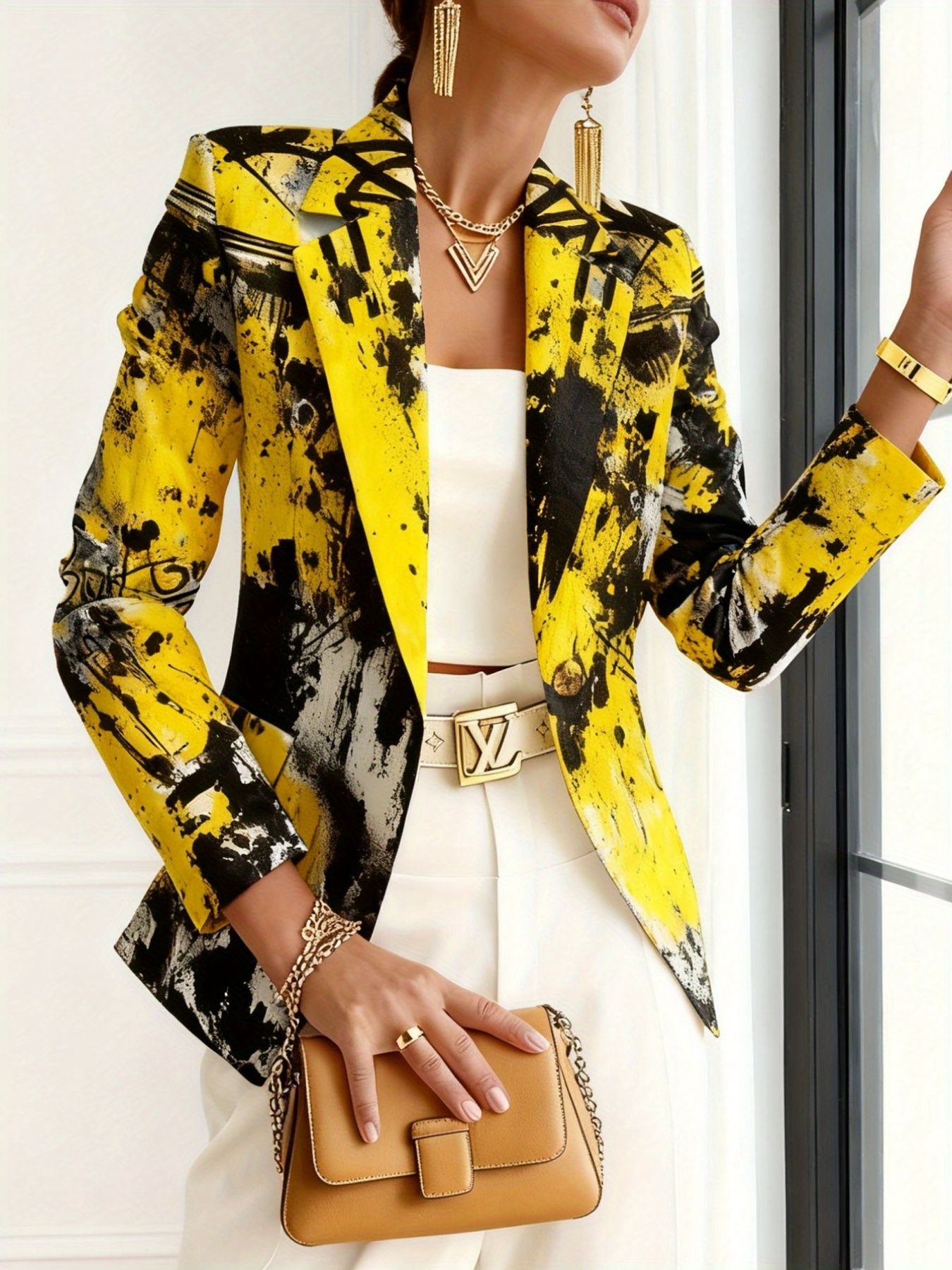 Plus Size, Plus Size Elegant Winter Wedding & Professional Suit Jacket - /Notch Collar Button-Front Coat, Machine Washable Warm Blazer for Commuting, Office, and Special Occasions (Solid Color)