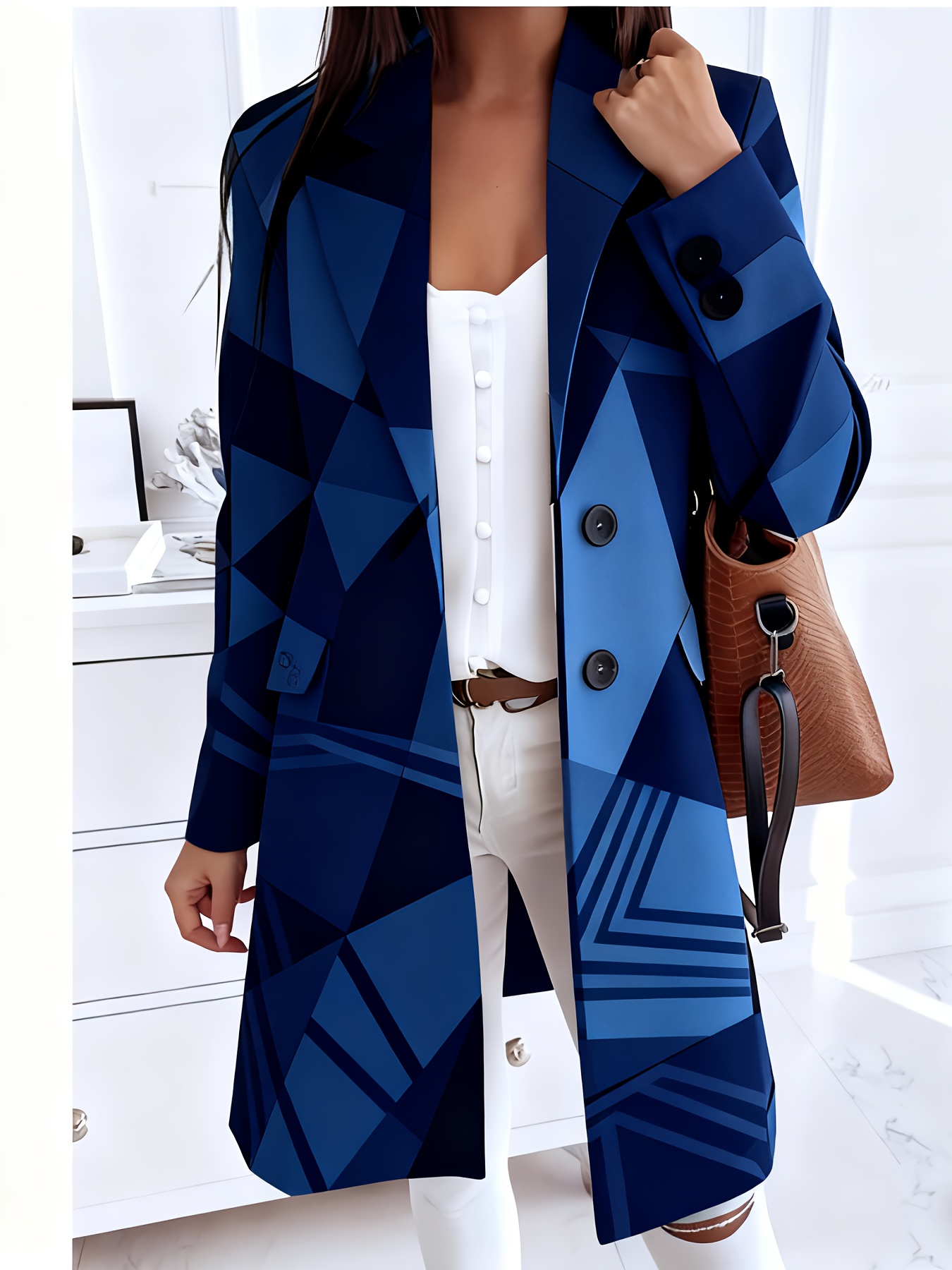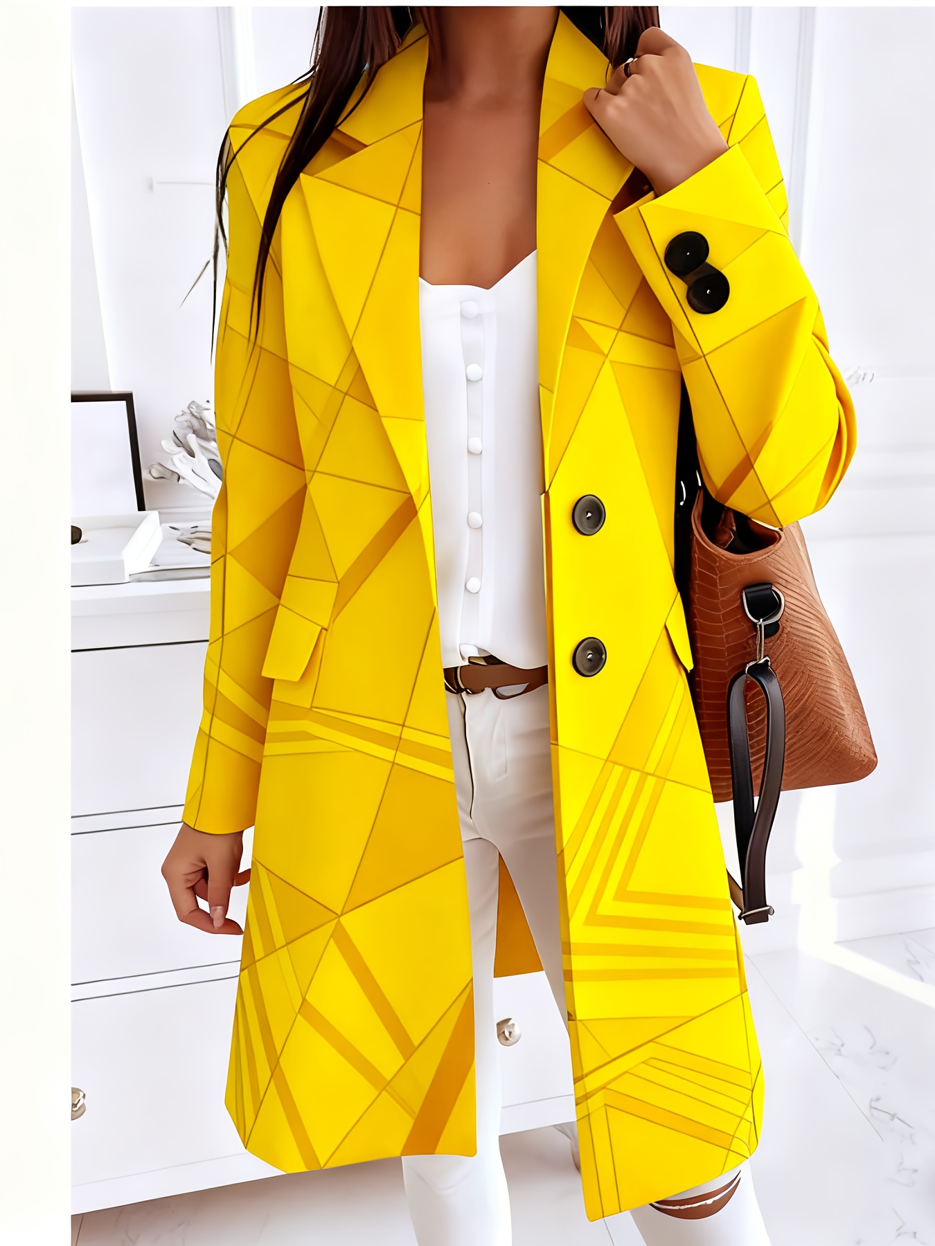 Plus-Size Women's Collar Button- Jacket - Winter-Ready Striped Coat with Chest Pocket, Wrinkle-Resistant Long Sleeve Blazer (Grey/Brown/Beige) for, Casual & Formal Events - Machine Washable Outerwear
