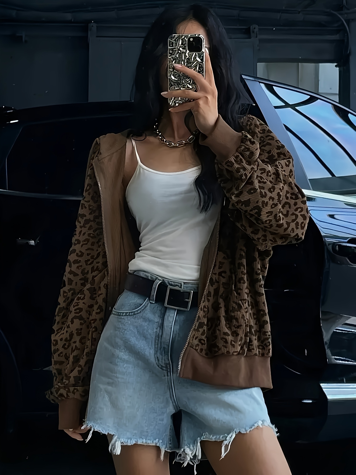 Plus Size - Women'S Plus Size Hooded Sweatshirt - Brown Leopard Print Zip-Up Jacket with Front Pockets, Long Sleeve Casual Outerwear for Everyday & Formal Outfits, Spring/fall Fashion, Spring Outerwear, Stylish Hoodie